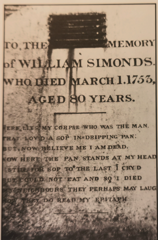 In the old burial ground to the west of the tower “The Dripping Pan Headstone” displayed its locally famous inscription ….. (R H Vincent, A Tanner Will Do)