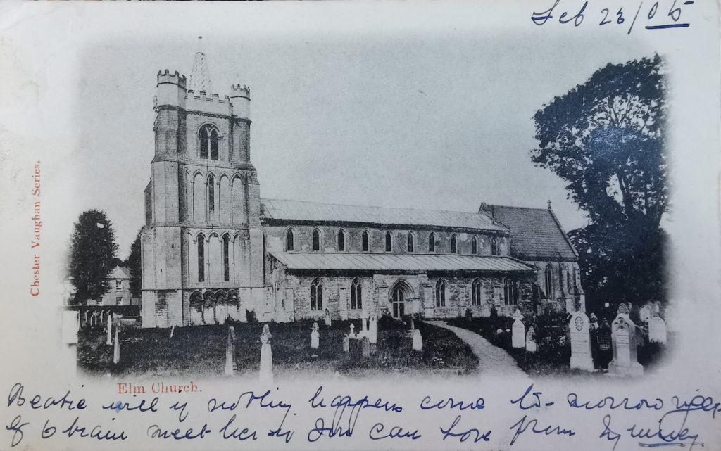 There was great parochial unrest when proposals were made to lay a tramline through the village, even a petition sent to Parliament. The tramway was laid from Wisbech to Upwell alongside the canal. Alas neither has survived, the tramway was a victim of Dr Beeching and the canal was filled in when the Anglian Water Authority re-routed the drainage in the fens. Many of the villagers remember the tramway and the canal, which was well used in the past, particularly on Saturday nights when revellers came home from Wisbech by barge, singing all the way! There are of course more houses now, a change from the last century when the scattered cottages all had their own small-holding or at least a large cottage garden. It is still an agricultural area with fruit, vegetables, flowers and grains being harvested throughout the year, but most of the newcomers go further afield to work. Social life centres round the church, church house, four public houses and the three village shops. In the 1920s there were five bakers in the village and the smell of new bread was wonderful! [Cambridgeshire Federation of Women’s Institutes. The Cambridgeshire village book. 1989]
