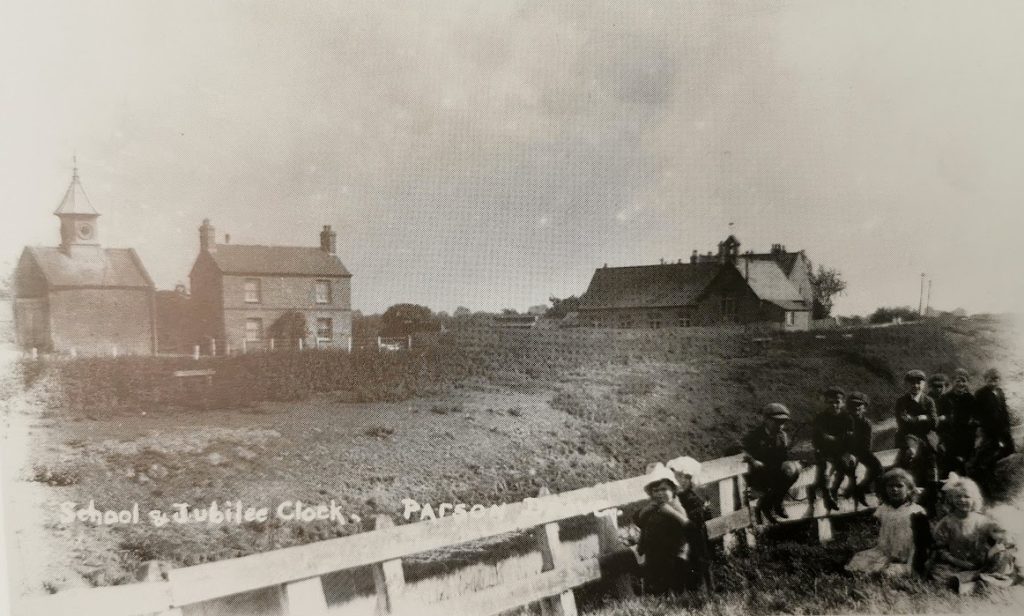 Parson Drove c1920s. The school was replaced in 1933. On the left is the jailhouse and clock tower built in 1897 (Wisbech library, Lilian Ream)For a vivid picture of life in Parsons Drove, see Edward Storey, The Winter Fens, pub 1993, in which he interviews Rev John Seaman.