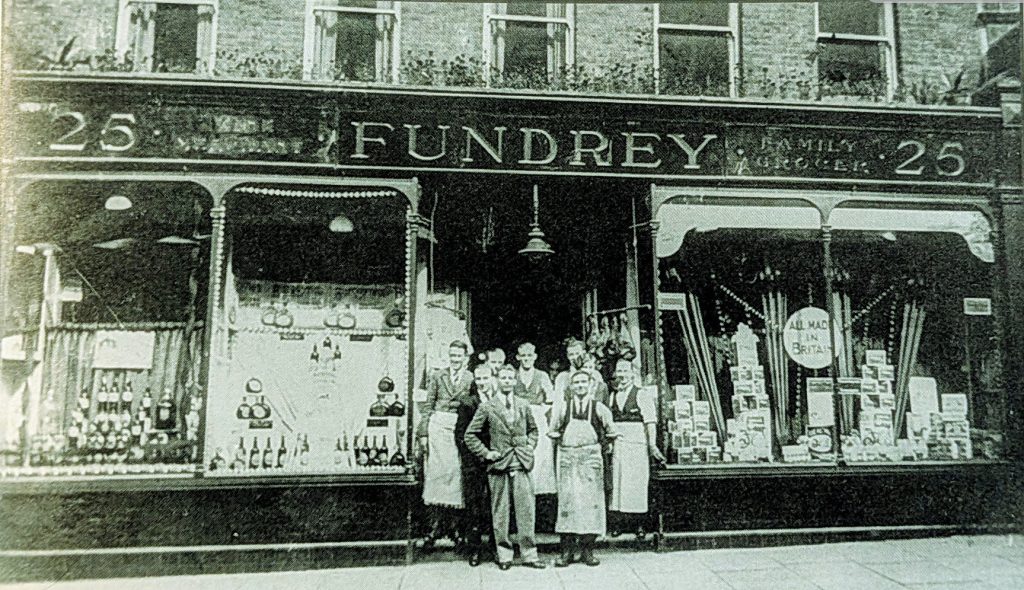25 High Street, Wisbech c1930c.1930: W V Fundrey grocer’s shop. Offered goods “All Made in Britain”.