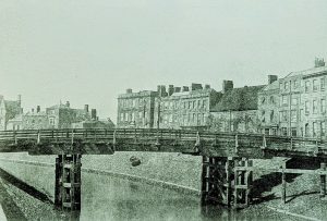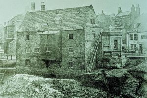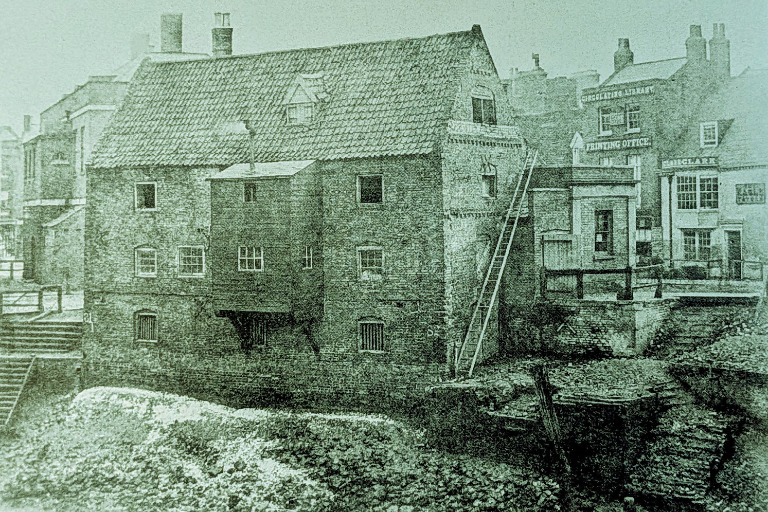 Lawson’s granary, South brink; demolished to make room for Iron Bridge c.1850 (Thomas Craddock?)