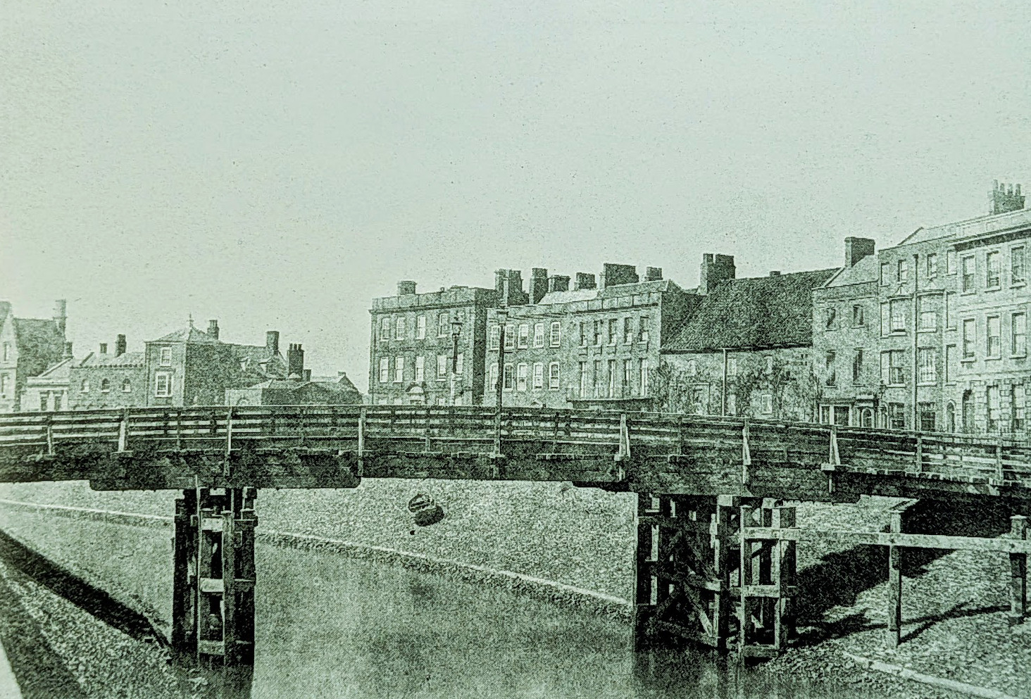 Temporary wooden bridge used between demolition of Stone Bridge and construction of iron Brdge, 1855-7 (Samuel Smith)