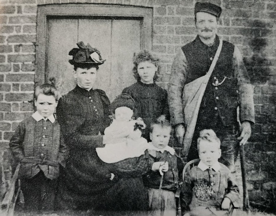 Arthur Randall’s parents and their eldest children in 1895. Mr Randall is wearing a moleskin cap and waistcoat.