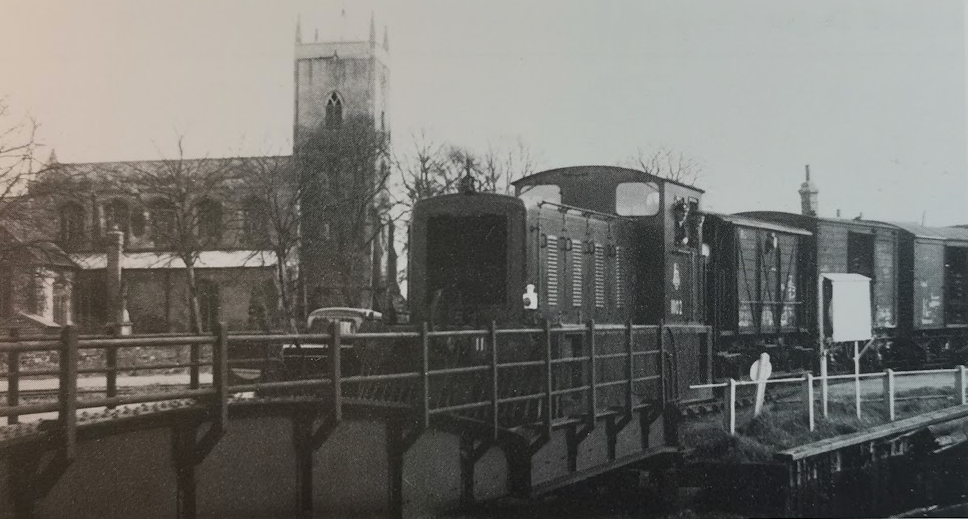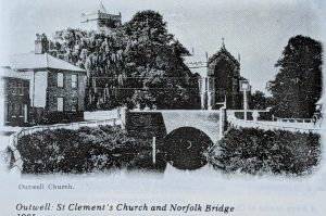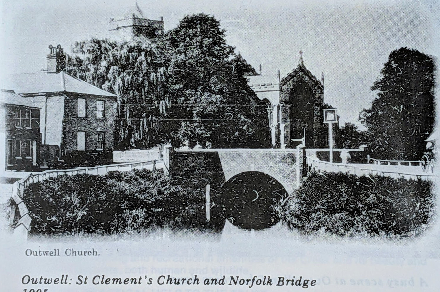 Tram crossing Well Creek with view of St Clement’s church, Outwell