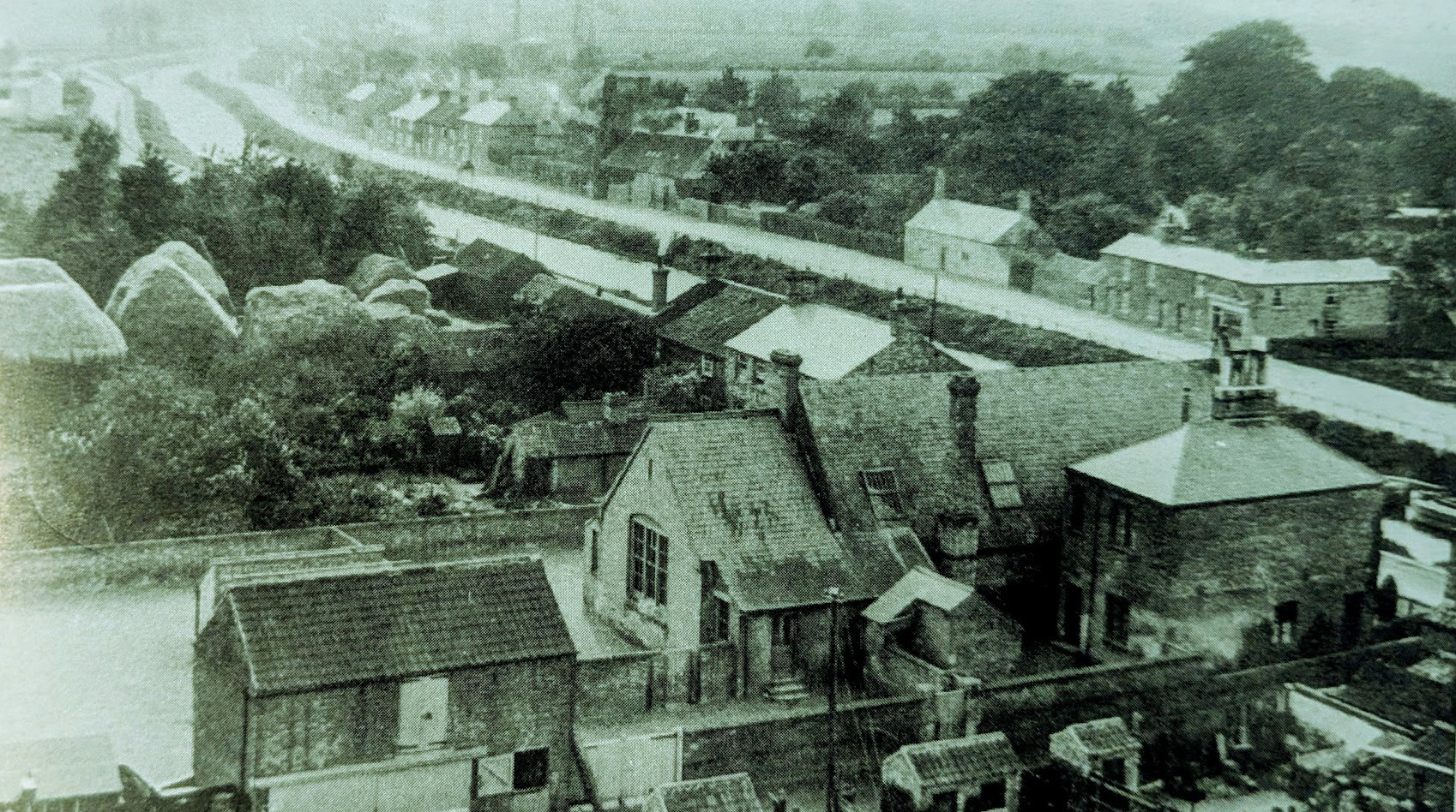 Looking north from Outwell church tower in 1901. A tram leaves the Depot on the left.