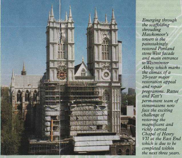 At the end of the 80s Rattee and Kett were responsible for the restoration of Portland stone West facade. They had a permanent team of stonemason at the abbey whose next task was the restoration of the chapel of Henry VII.