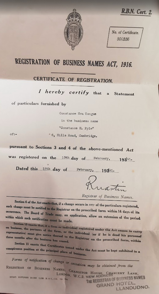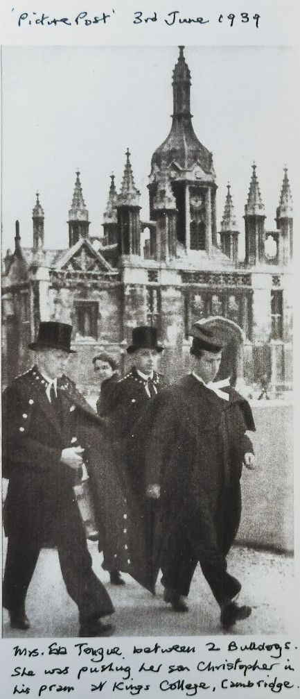 Christopher Tongue family history continued [previous]: Eva insisted that she must remain in Cambridge and continue her business life under her unmarried name, but she was prepared for a degree of domesticity, assisted by a maid or domestic help. After a few years in a flat the couple moved to 6 Hills Road, a large house rented from a Mrs Stokes whose husband was a jockey employed by Indian Rajahs. The main reason for the change of address was the birth of their only child Christopher in 1937. Whereas in a more orthodox marriage Eva might have settled down (at the age of forty) to a secondary, home-making role this was to be far from the true case, because she had to be wife, proprietress, landlady ad much besides.