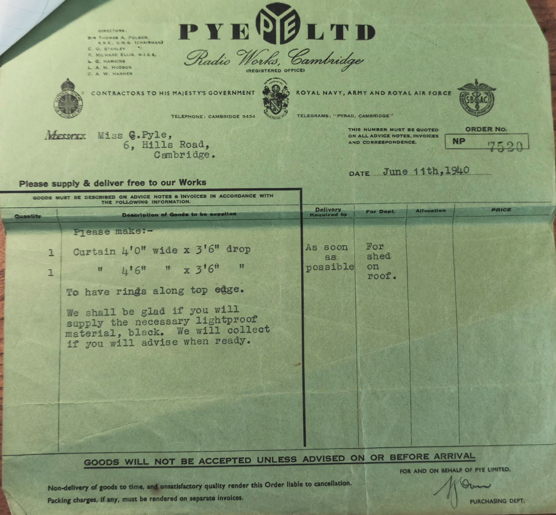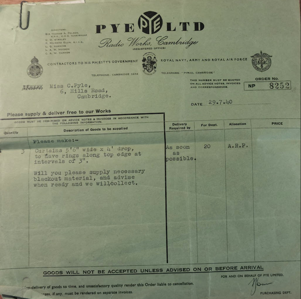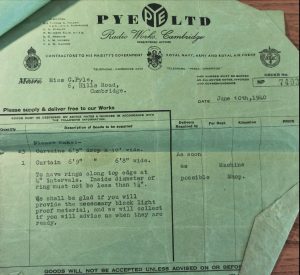 Claude was called up into te Army, posted to Yorkshire and eventually went to France. Eva was enlisted as an air raid warden – the few bombs which fell on Cambridge were aimed at the nearby railway station. Then without warning Mrs Stokes, now remarried to become Mrs Dick, returned from abroad and asked for possession of the house. The two court cases which followed were known as the Dirty Dick affair, both of which Eva had to fight alone, with legal advisers in the background. The result of the first judgement was that the devious Mrs Dick was given possession of half the house  and everything had to be condensed into one floor and a basement (living quarters, workroom and fitting room). Then Mrs Dick went to extremes by erecting partitions in corridors and denying access. Another cases, with the judge and jury visiting the premises, resulted in the dismantling of all provocative barriers and a moral victory for Eva. In was an exhausting and worrying time, and only the coming of Peace and the decision to move to 28 Bateman Street settled the problem in 1945. Thereafter Eva had adequate accommodation for everything. [continuation]