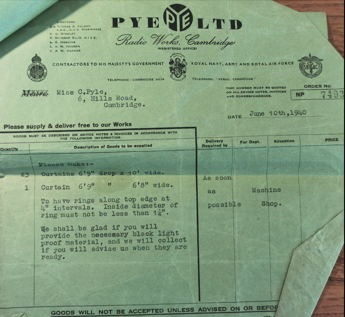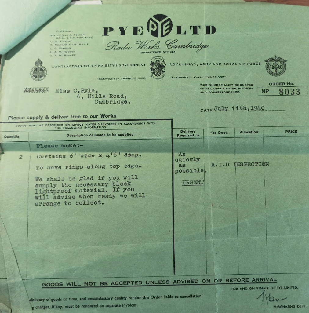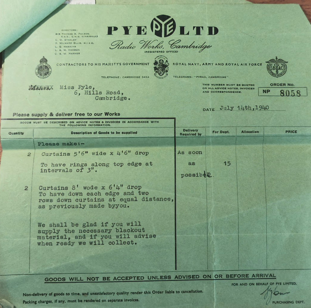 1945, invoice to Beatrix Oldfield from Constance Pyle