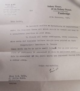 Constance Pyle moved her business here from 35 St Andrew’s Street around 1934 and it stayed here until 1945 when she moved to 28 Bateman Street.