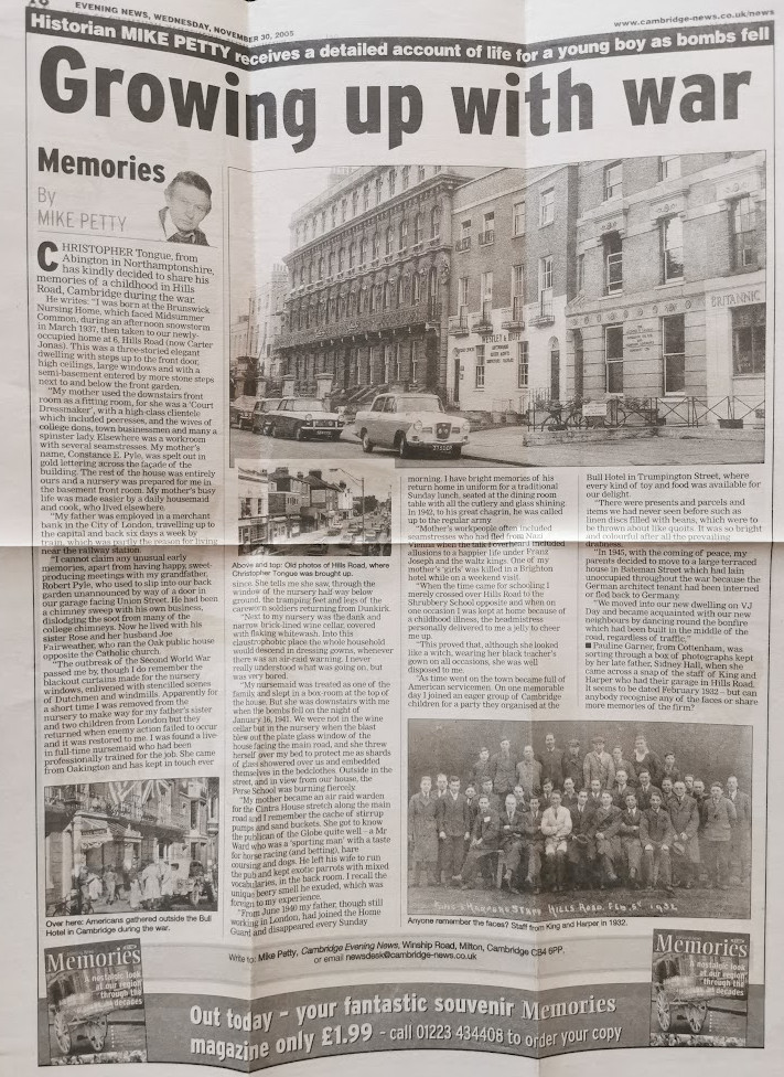 Growing Up On Hills Road, reminiscences of Christopher Tongue