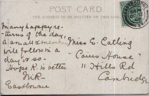 These postcards were sent to Miss [E] Catling in 1903 and 1904 at Caius House.