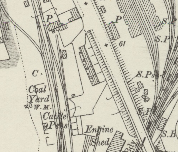 Hills Road Railway Bridge, OS 1901Probable location. The existence of Coote and Warren’s Coal Wharf later in the century at this location suggests that this is where the cottages were listed in the 1861 census. There were several unnumbered cottages at the time. In the 1881 census there are 6 cottages called the LNW Railway Cottages which may well have been the same buildings. The line of cottages is apparent in the middle of the 1901 map extract.