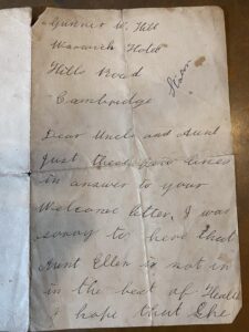 In 2020 the Museum of Cambridge was sent a copy of this letter and photo. The letter was written by William John Hill (b 1897, Neath Glamorgan; died 1920, Neath) to his aunt and uncle in Neath, South Wales. It seems to suggest he might have been convalescing at the Warwick Hotel but we can find no evidence that the hotel was used for this purpose. His military record shows that he was awarded the DCM for gallantry while under fire (3.9.1918.)