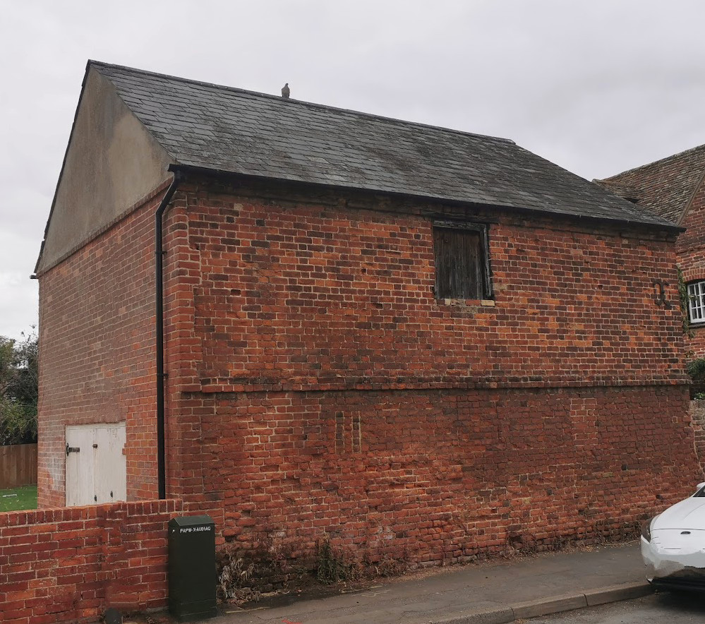 Former coach house and – stables to Old House, now in garden of No. 50. Early C18. Red brick with rebuilt north gable end.