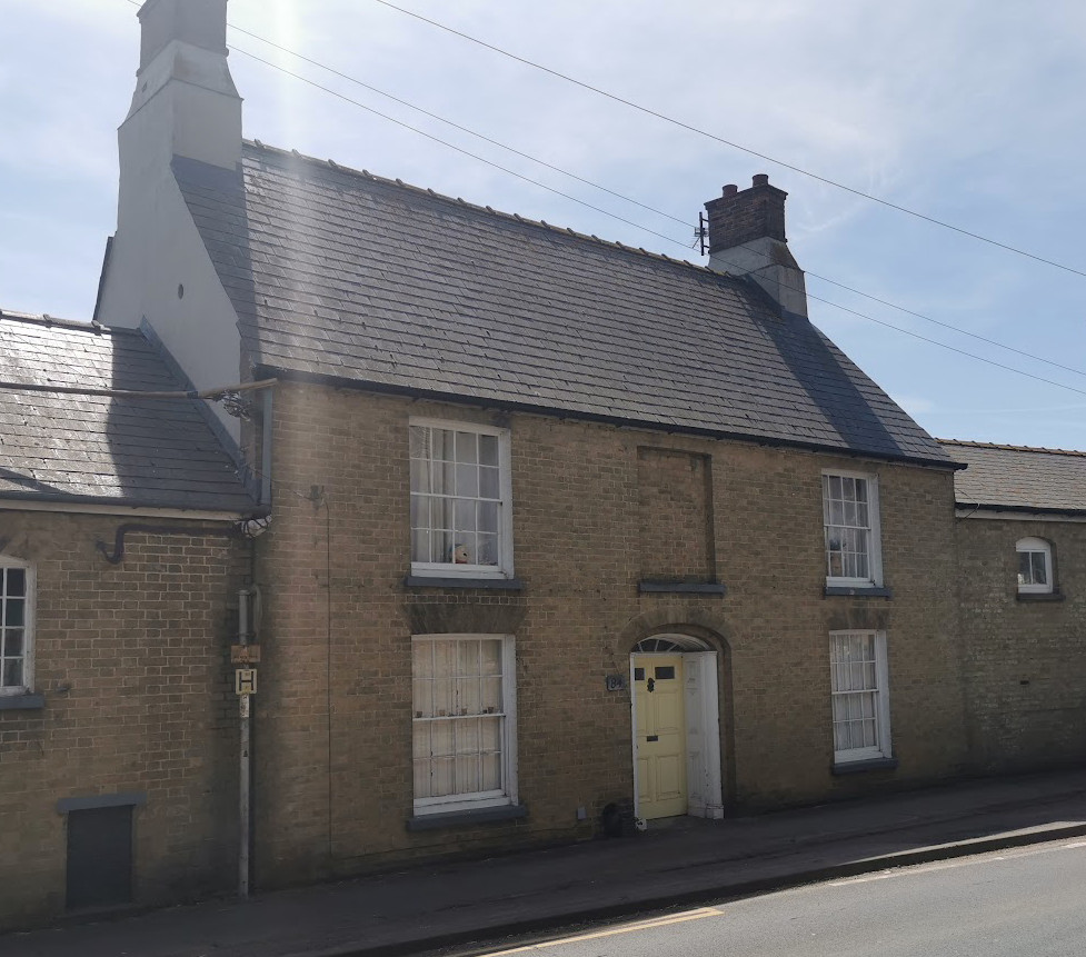 Circa 1840 house. Gault brick, steeply pitched slate roof, end stacks.