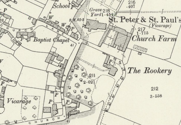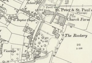In the 1851 census properties are listed along Church Lane, then Church End until the High Street. This suggests that Church End was  renamed Church Street as shown on the 1900 OS map. The Mann house is likely to have been at the north end of Church End / Church Street near the Church.