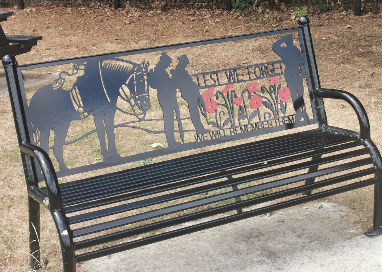 Memorial bench at Pond, Hilton Road, Fenstanton