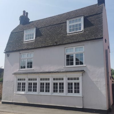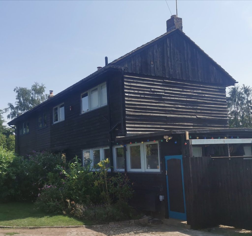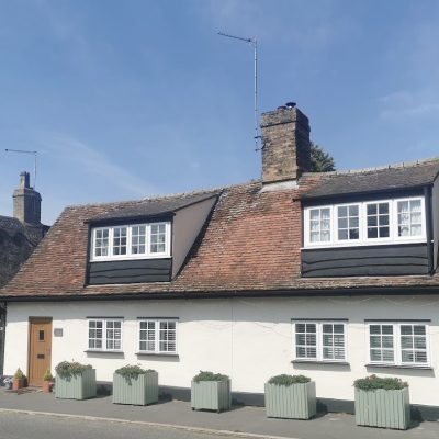 Corpus Christi Lane, Godmanchester (RGL2025)The three pairs of prefabricated agricultural workers’ houses were built in 1948 on land that once belonged to the Guild of Corpus Christi Chantry. This was suppressed by Henry VIII and then passed to the church which still retains ownership. Nos 1 and 3 were built on the former site of the late C16 or early C17 Corpus Christi House, the remains of which now form the red brick wall in front of the semi-detached houses. … The houses at Corpus Christi Lane were designed by Charles Burwell Kerrens Van Norman (1907-1975), a Canadian architect from Vancouver. … The houses were built as part of the government’s plans to provide accommodation as quickly and economically as possible during a period when both building materials and construction labour were in short supply