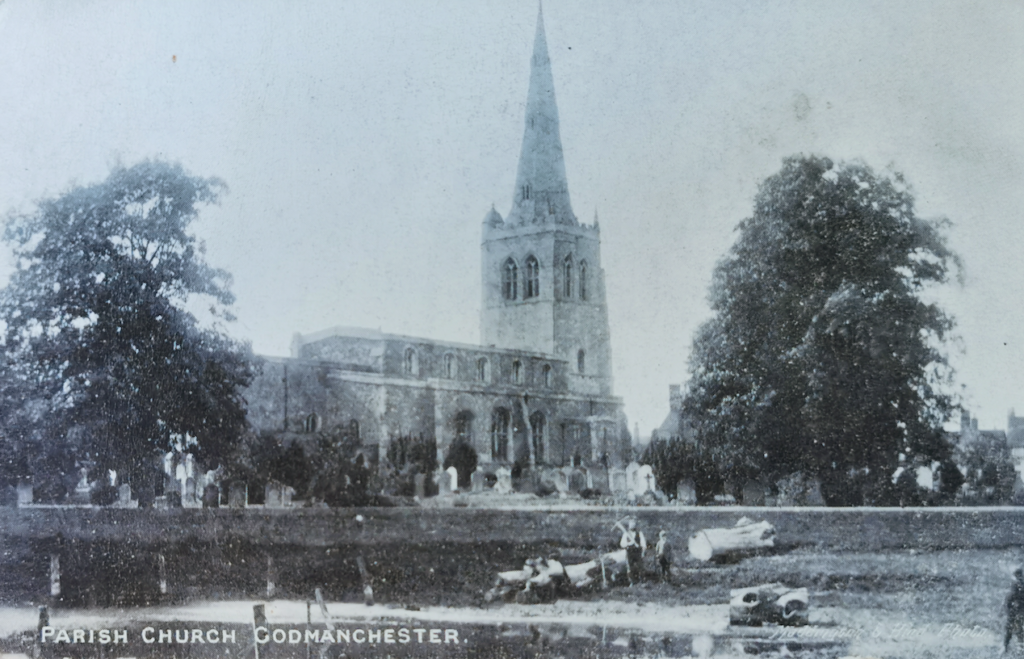 Parish Church GodmanchesterC13, with C14-C15 phases; tower of 1625; restored by George Gilbert Scott in 1853.