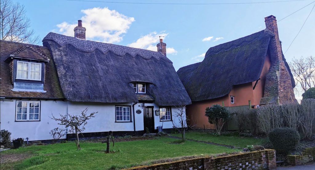 Early C18 timber framed and plastered cottage, one storey and attic. (Historic England)