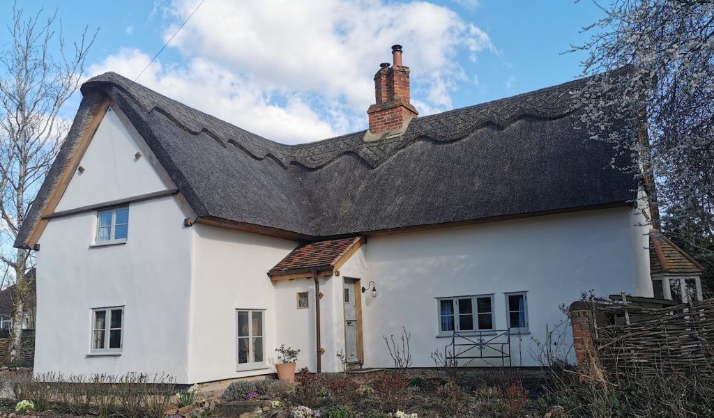 Mainly C17, timber framed and plastered cottage with thatched roofs. (Historic England)