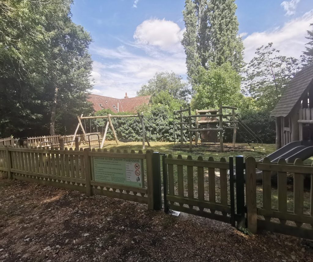 Playground, The Grove, Hilton (RGL2025)According to Dora Tack, the bank on the left side of the Grove had a footpath which would be used by pedestrians and cyclists when the lane flooded. Half way along was the village pump which some preferred to use even after piped water had come to the village.