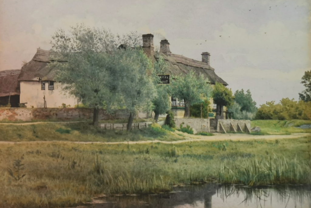 The Ferry Boat used to be two separate dwellings, the inn ‘The Boat’, facing the river, and Ferry Cottage, facing west. Hereward the Wake is said to have crossed the river at this point.