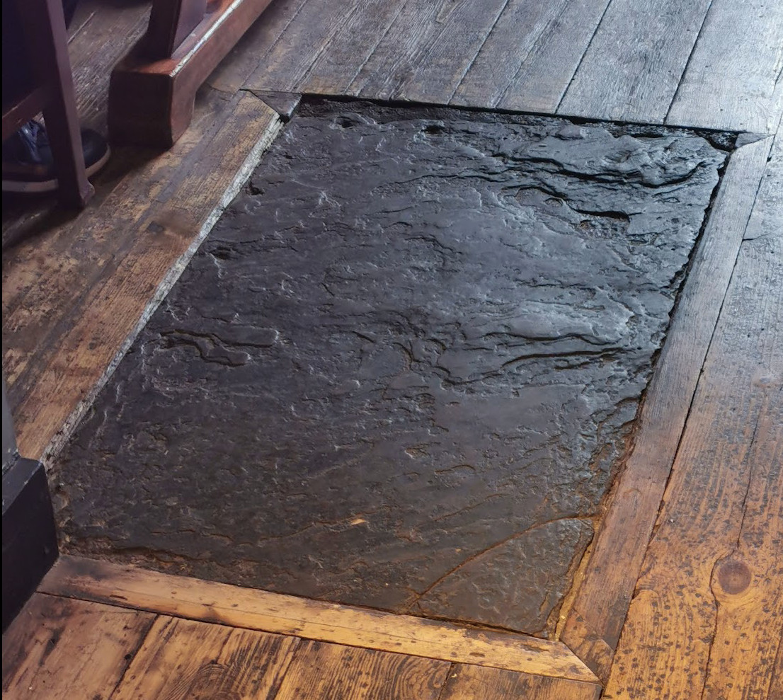 The story is that on March 17th 1050 a 17 year old local girl fell in love with a forester called Tom Zoul. Tom did not return her love and Juliet took her own life. She was buried in unhallowed ground close to the inn and her grave was marked with a plain stone slab. Because of the expansion of the pub the slab is now inside the inn and it is claimed that on March 17th each year an apparition rises from the river and glides towards the grave. Many strange events have been recorded at the location.