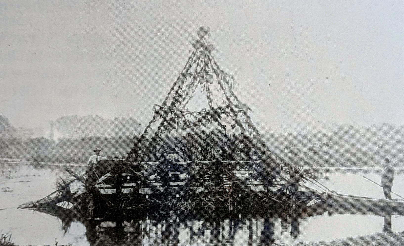 The ferry is decorated on Oak Day with poles decorated with Chinese lanterns.