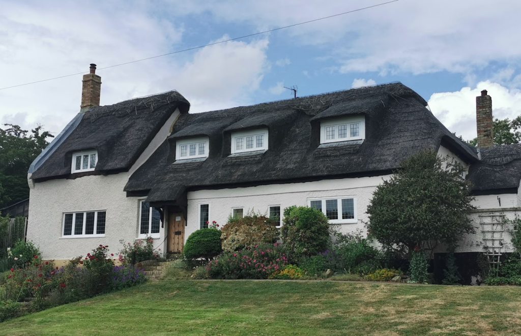 Possibly late C16 cottage of three unit plan, one-storey and attics and two-storeys to left hand. Timber-framed and rough-cast.