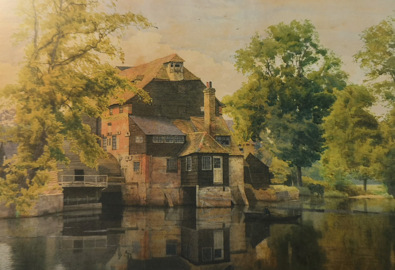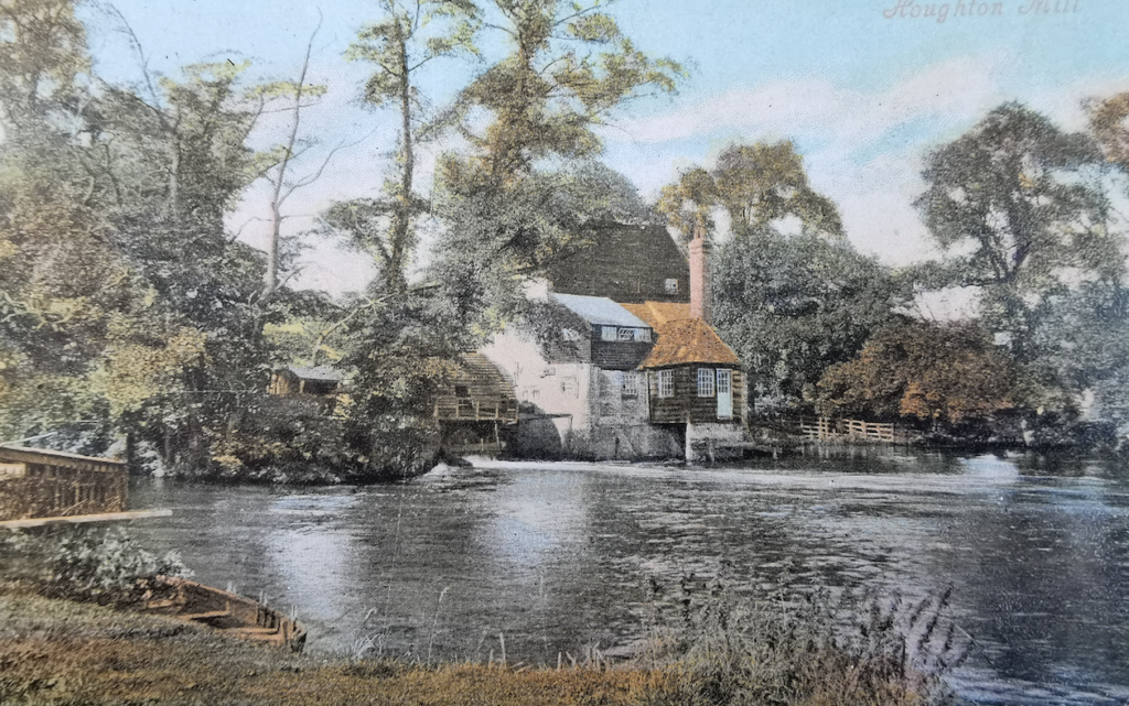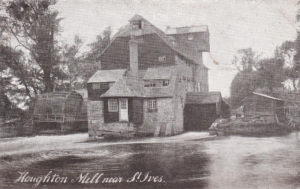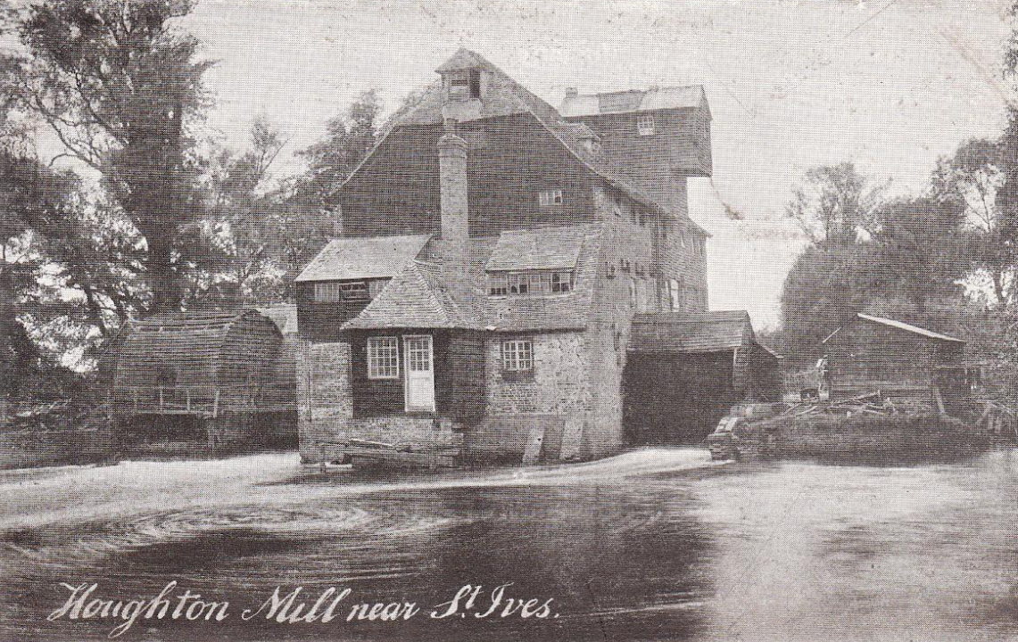 Houghton MillLocated on the River Great Ouse between St Ives and Huntingdon, there has been a mill on the Ouse near Houghton since at least the year 974. The present mill is believed to have been built in the 17th century replacing one that burnt down. The mill closed in 1928 when the last miller, Arthur Chopping, retired and the water wheels were removed. Water mills were once a common sight with around 120 mills on the central 70 mile stretch of the Ouse. At its height, the mill ran ten separate pairs of grinding stones, with the power supplied by three wheels.