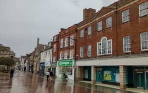 To the left of the hotel is Freeman Hardy and Willis. Above the shop is an inscription ‘1727’ dating from when the building was a bank.