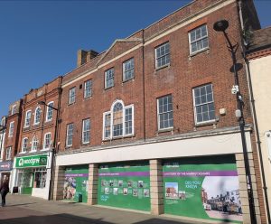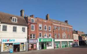 The Fountain Hotel had been on this site since at least 1812. In its day it was a famous posting house/coaching Inn. It closed in 1912 and the site, including the corn exchange behind, was purchased by Murkett Bros. Murkett’s showrooms were created either side of the entrance and they converted the Corn Exchange into a cinema. Later occupants of the site were Woolworth’s who remained at the location until they closed in December 2008. Next up it became the home of a 99p shop, but that too has since closed and the site is now empty. Wonder what the future holds for this grade 2 listed building.
