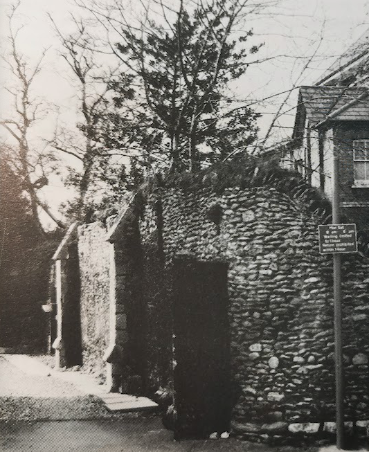 In the garden of ‘Priory House’ are the remains of the barn which now form the garden wall.