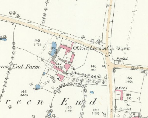Cromwell’s barn was demolished in the early 1960s. It was probably built in the 16th century. There is no evidence that actually links the barn with Cromwell.