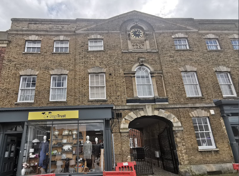 32 Market Square, St Neots (RGL2024)To the rear of the brewery, reached through the elliptical-arched carriageway, are three ranges of industrial structures, forming two courtyards. All were used at one time or another in the brewing process. They are of several distinct builds, with the earliest actually predating the main range to Market Square and very likely of the C17; the latest dates structures date to the early part of the C20. This assortment of industrial buildings vividly illustrates the history of Paine’s brewery over two centuries.