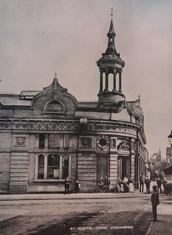 Corn Exchange, St Neots (J Phillips date unknown)St Neots’ Corn Exchange was built in the 1860s with a cupola. In 1915 it was purchased by C A James who opened a cinema. It caught fire in 1929 and the cupola collapsed. It was reopened as the Pavilion Cinema until 1969 when the whole building was demolished.