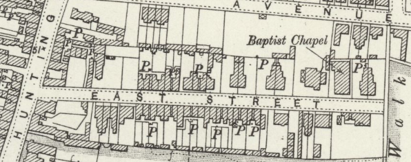 East Street, St Neots - OS 1901East Street was the location of the murder of Annie Holmes in 1898.