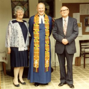 Rev Fred and Mrs Joan Clifford who lived at St Hilda’s (Mabel Demaine’s farm home) in Hop Row. Photograph taken with Chair of E.A. District at Centenary Celebration 1991