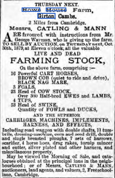 Howe House Farm Advert 1879