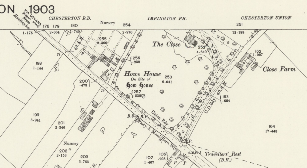 A H Nelson mentions in Early Cambridge Theatre p.100  that ‘an apparently minor open air venue was the Howes now recalled by such names as Howes Place and the White House.