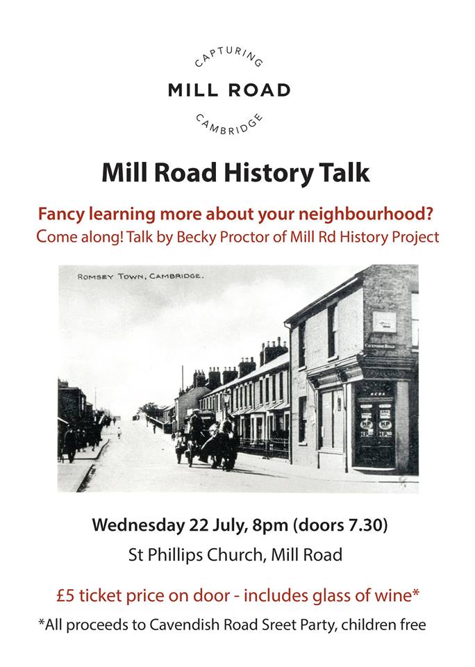 On 22nd July 2015, Becky Proctor, the Project Manager for the Mill Road History Project, gave a talk about the project in St. Philips Church on Mill Road in support of the Cavendish Road street party.