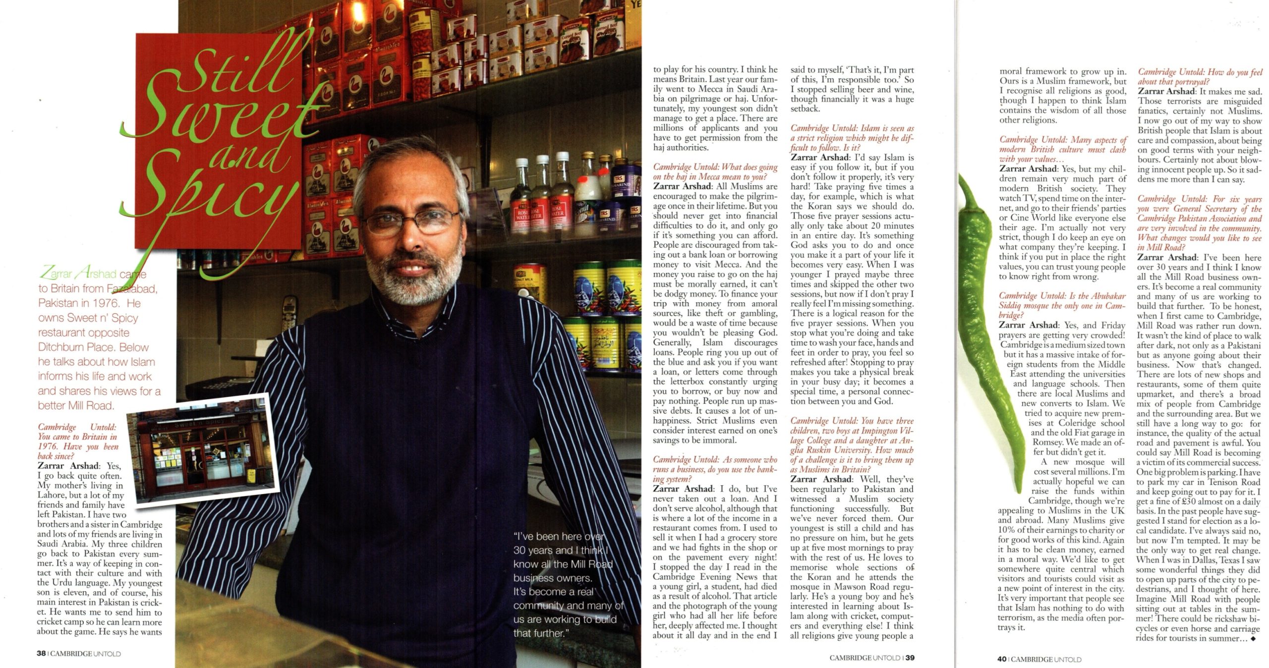 In 2007 Cambridge Untold magazine interviewed many Mill Road people including Zarrar Arshad who owned the Sweet ‘n’ Spicy restaurant.