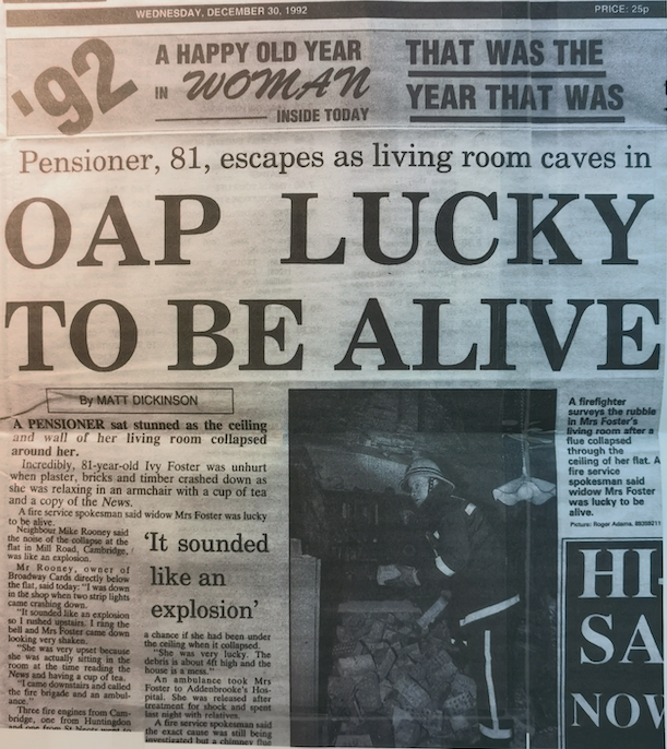 At the end of 1992, after my father had died, one of the internal walls collapsed and the whole of the inside had to be refurbished, which was reported in the Evening News. Later on it became a cycle shop.