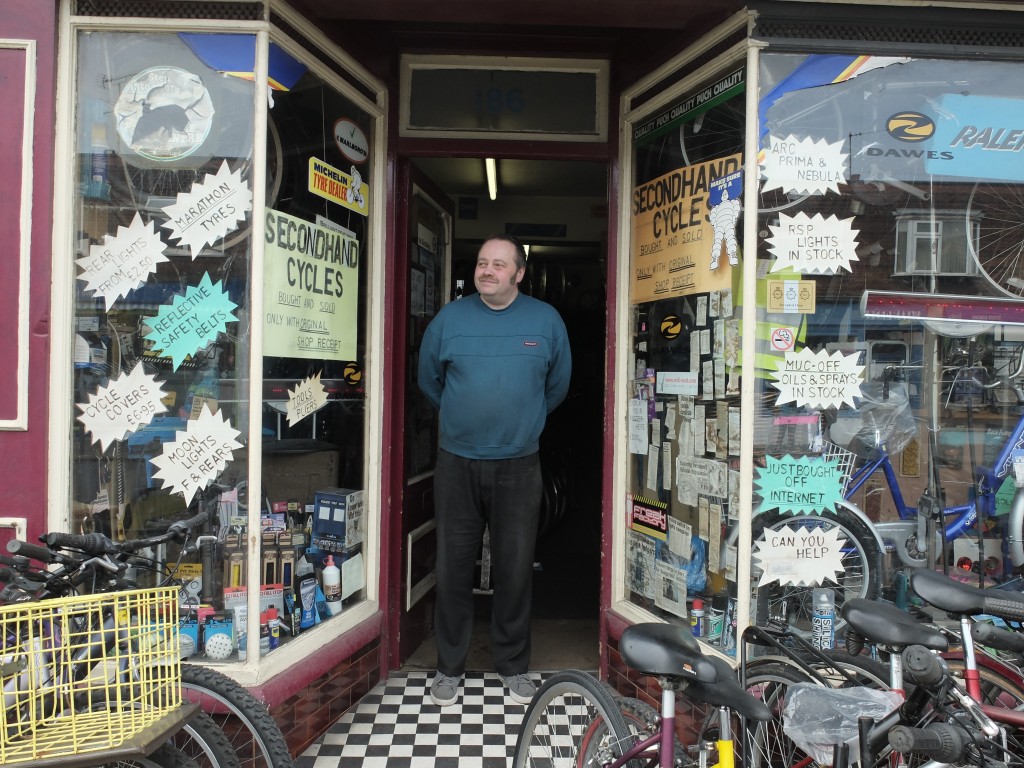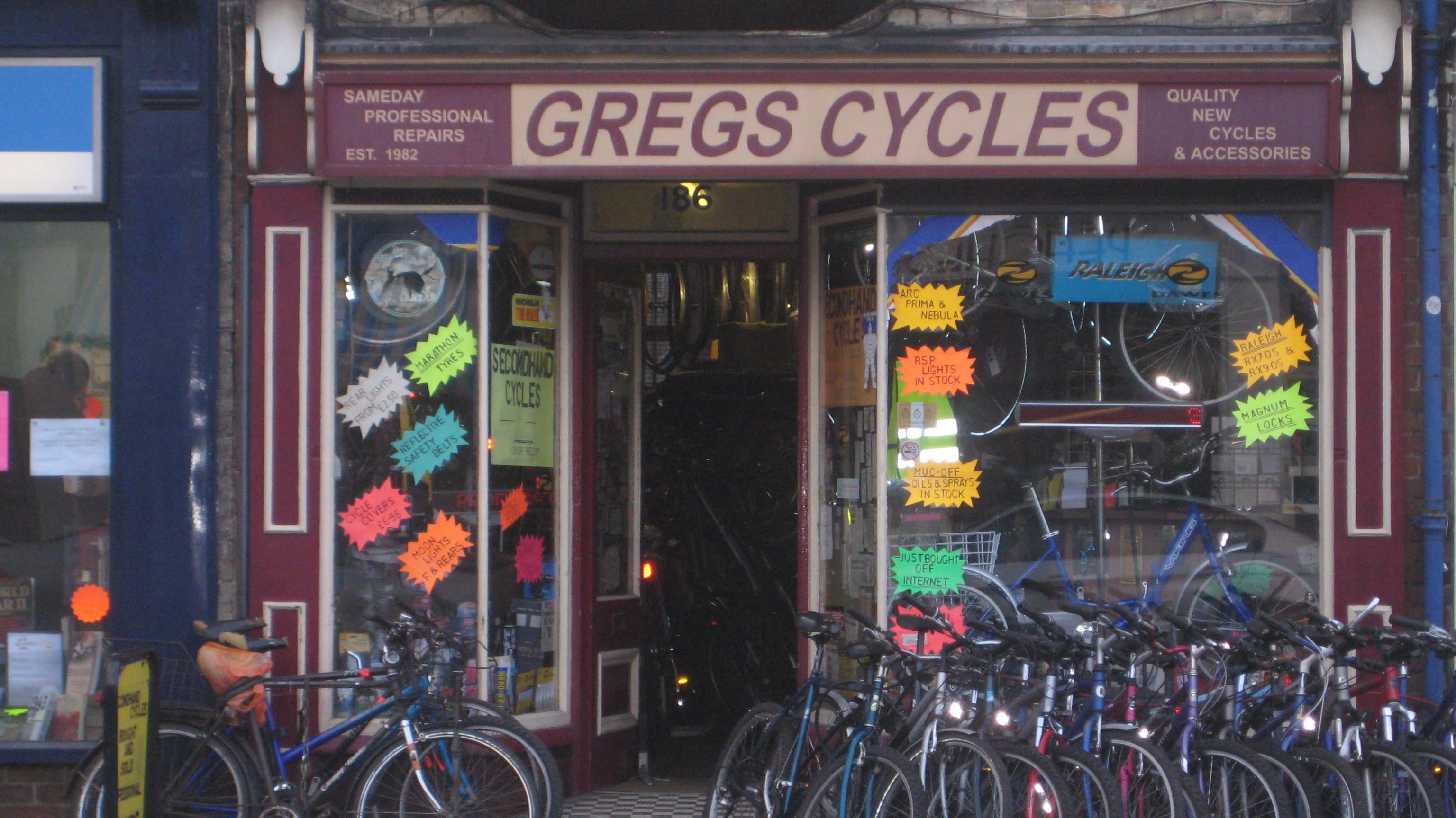 Courtesy of K BlythThe building is situated on the Romsey side of the railway bridge on the South side of the road in the centre of a terrace of shops. First known as a boot-maker’s, it’s been an undertaker’s, a watchmaker’s for nearly 60 years and a charity shop. Since 1982 it’s been the home of Greg’s Cycles, run by Greg Coleman.