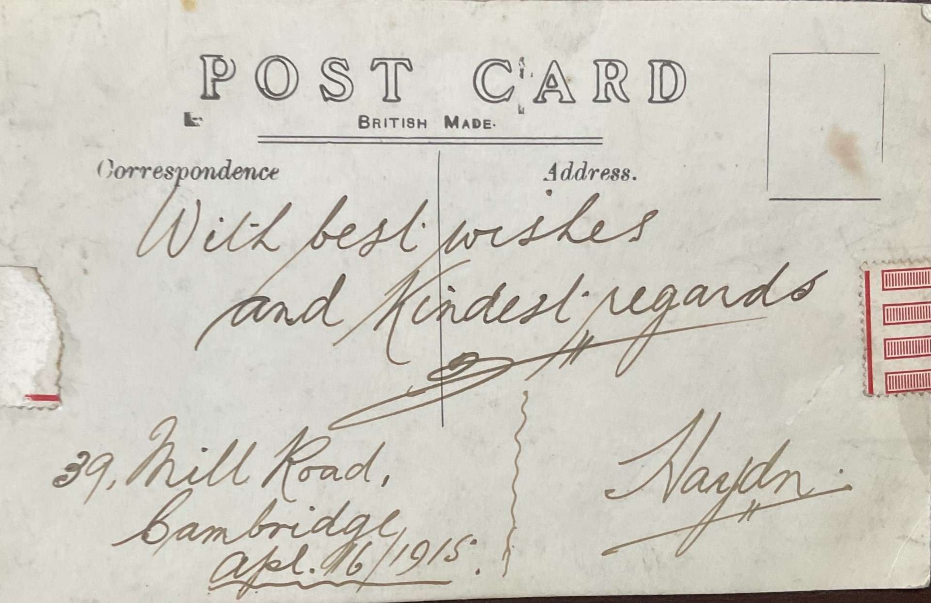 Haydn Williams, 39 Mill Road1913