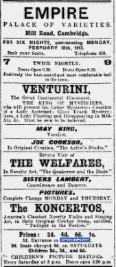 In 1882 Sturton Town Hall opened and hosted a variety of acts over the next three years until the renewal of its theatrical licence  was refused. The Salvation Army took a lease on the hall which provided regular income over the next 25 years. In 1910 Fred Hawkins refurbished the hall and opened The Empire, for the first time showing the newly popular cinematographs as well as the traditional music hall entertainment.