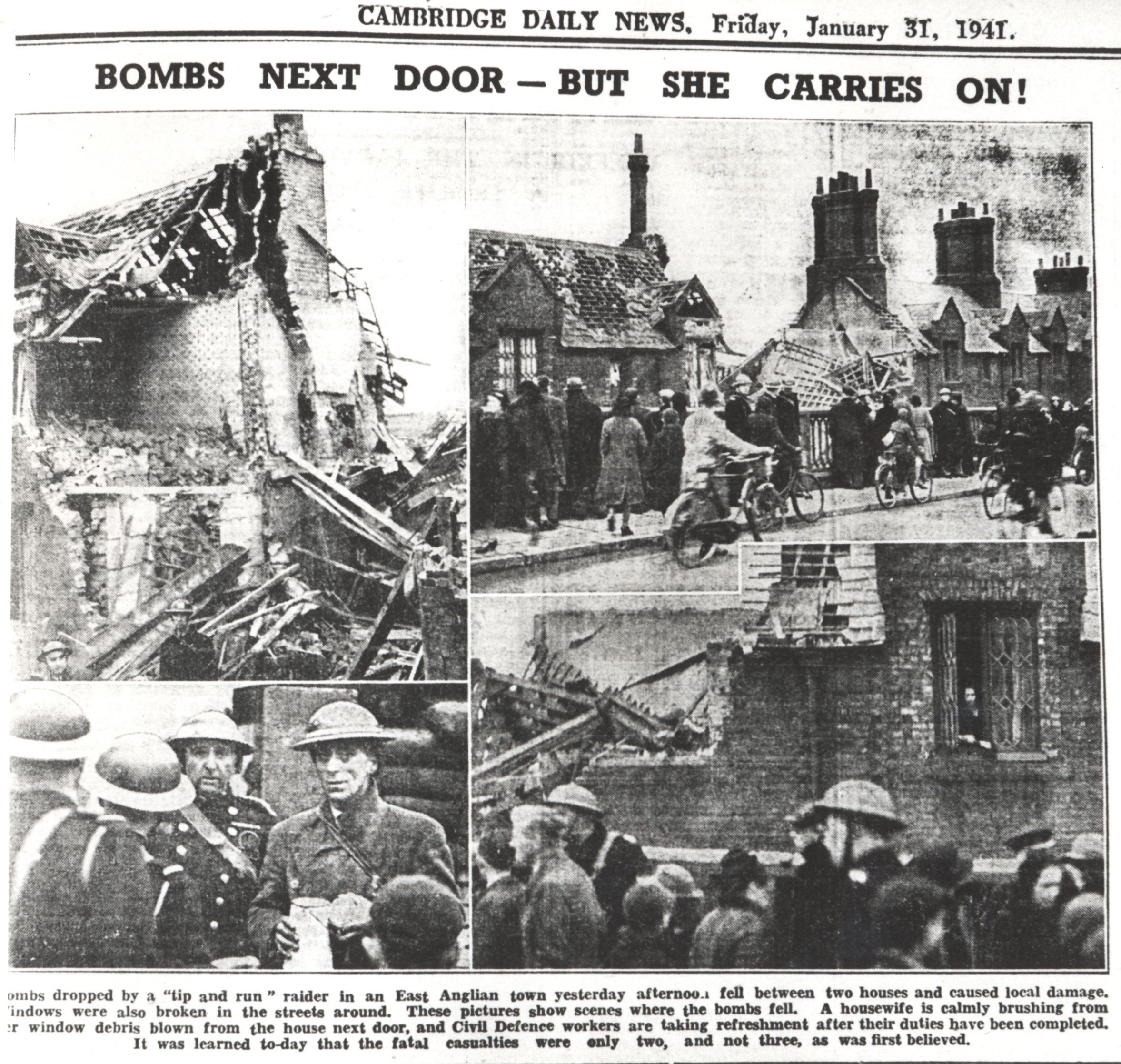 One man on the bridge at the time, John Lake, of Thoday Street, was killed; the main damage to property was to Railway Cottages, but a huge hole was blown into the railings of the bridge on the north side, and many remember the large metal plate which covered the gap for many years.