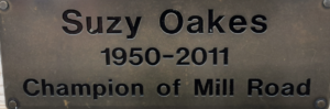 It is impossible to ignore the bridge on Mill Road; indeed, it is something of a defining landmark. It both divides the two wards of Romsey and Petersfield (often seen as very different in character) and also unites them. As such, it is a key part of the logo of the website www.mill-road.com created by the late Suzy Oakes, whose life is commemorated by a bench on the summit of the bridge.